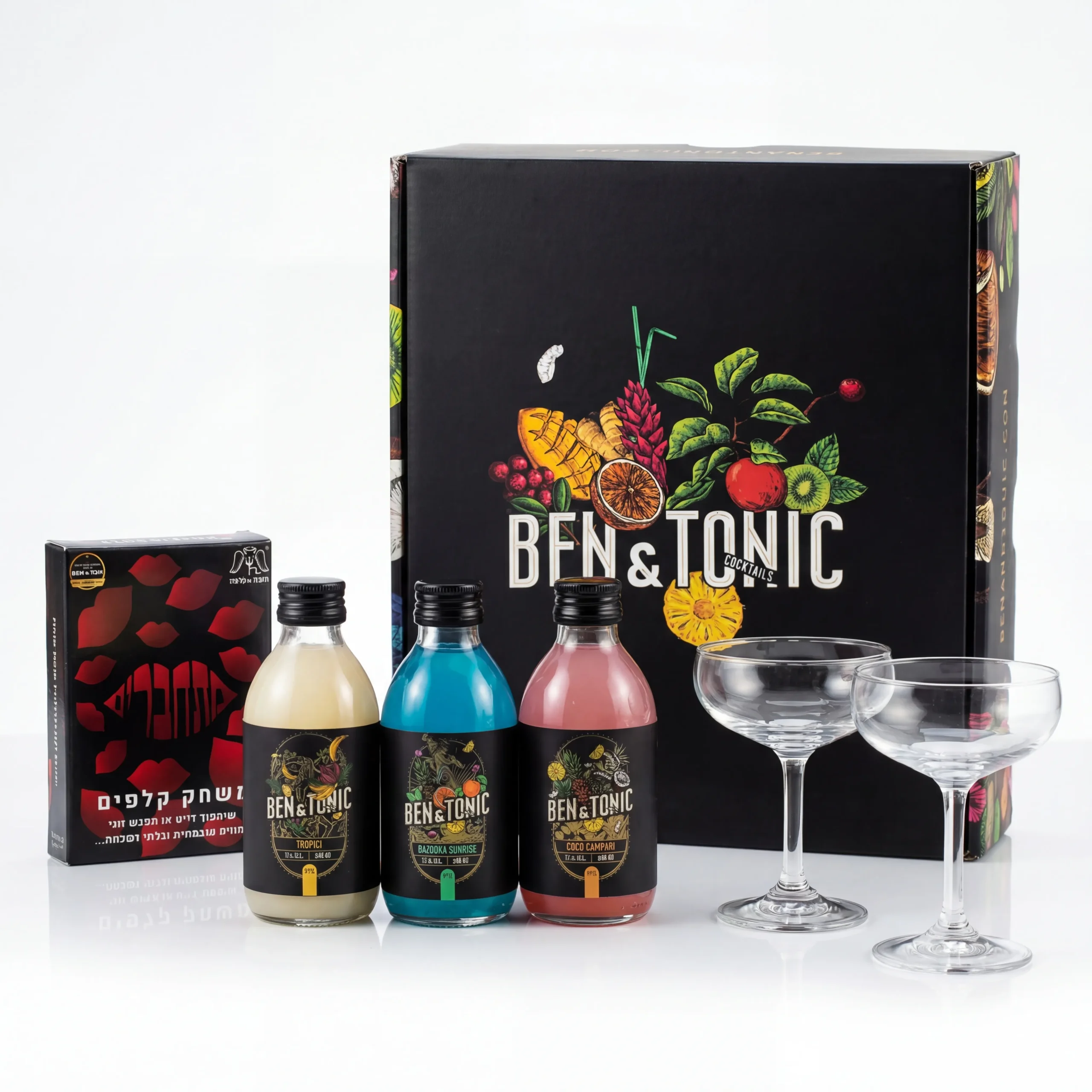 מארז דייטים המכיל 3 בקבוקי קוקטיילים בגודל 200 מ"ל בטעמים טרופיים מרעננים: