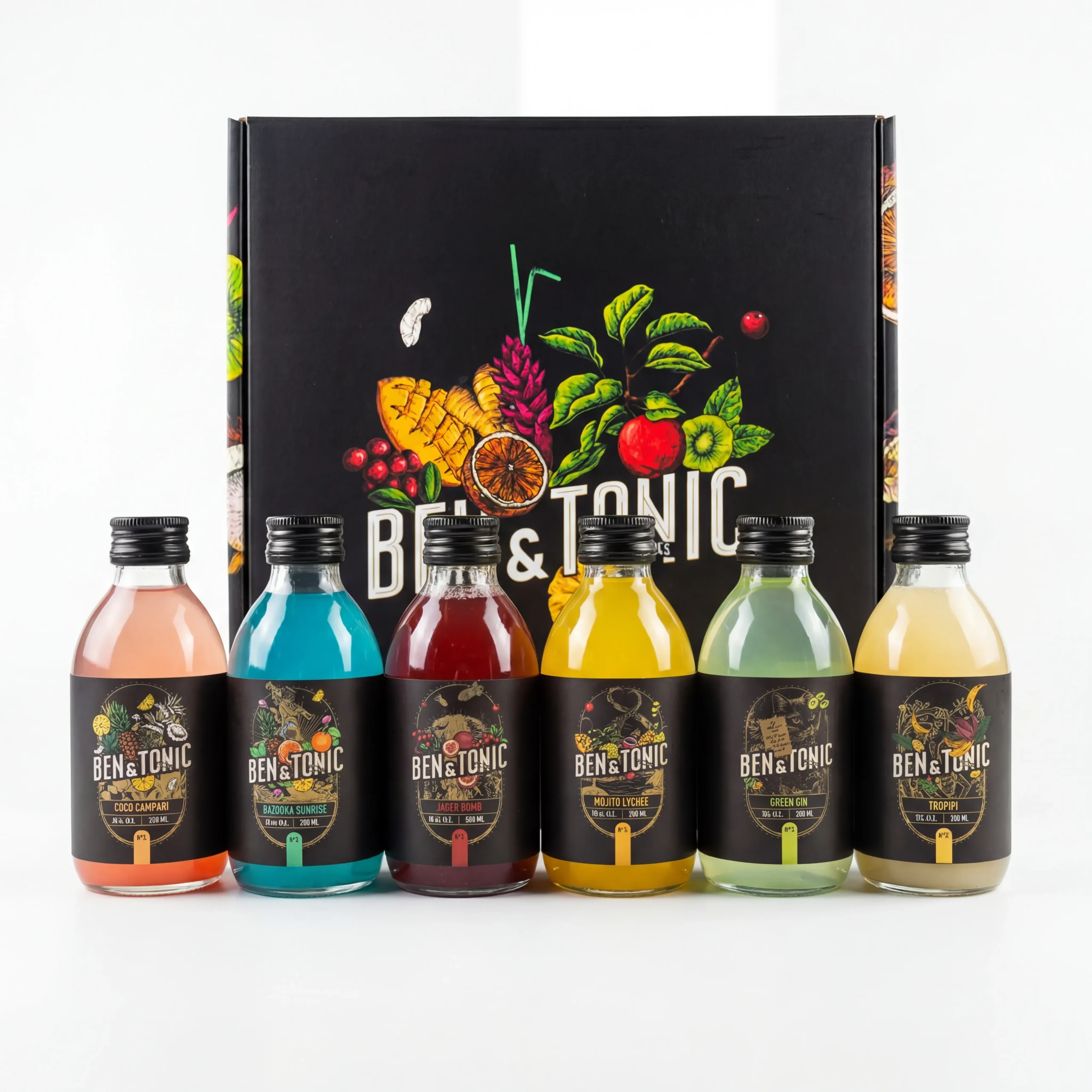 מארז טעימות הכולל 6 בקבוקי קוקטיילים 200 מ"ל בטעמים שונים: