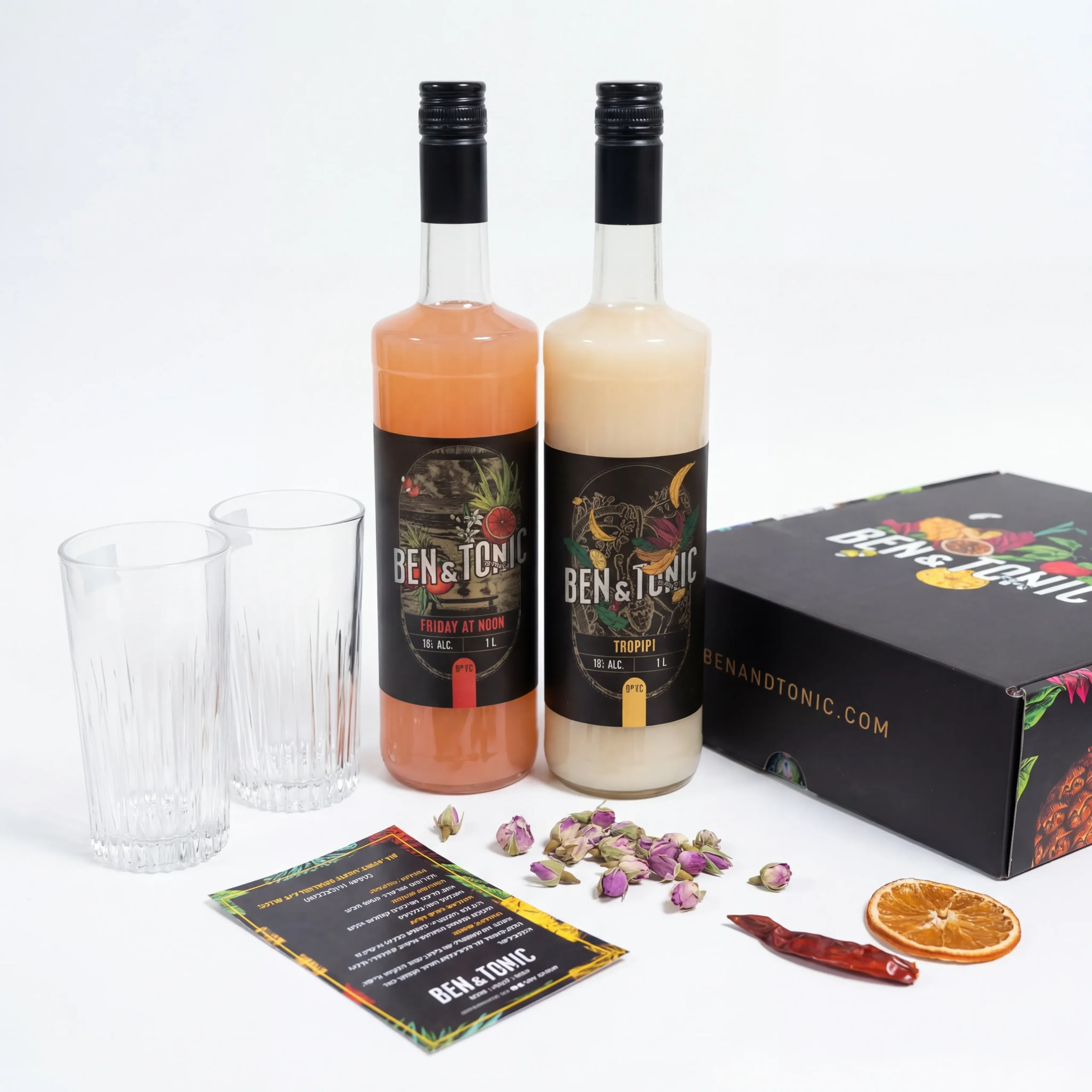 מארז קוקטיילים ליום שישי הכולל: 2 בקבוקי קוקטיילים בגודל של 1,000 מ"ל בטעמים לבחירתכם.