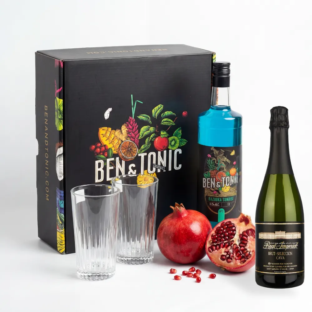 מארז לראש השנה חגיגי עם קוקטייל איכותי ויין מבעבע מובחר.